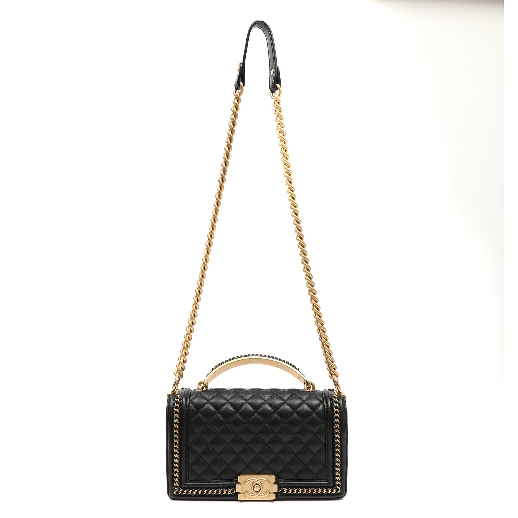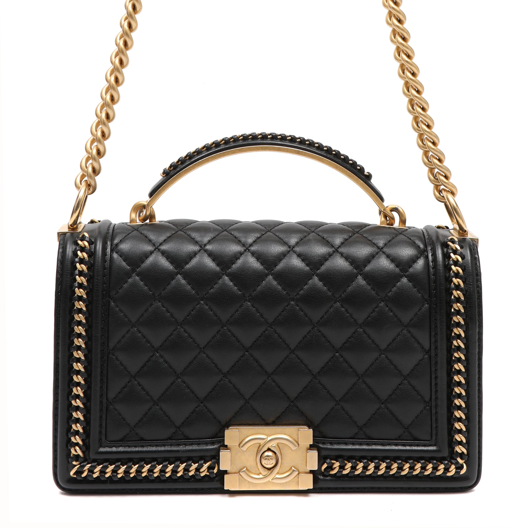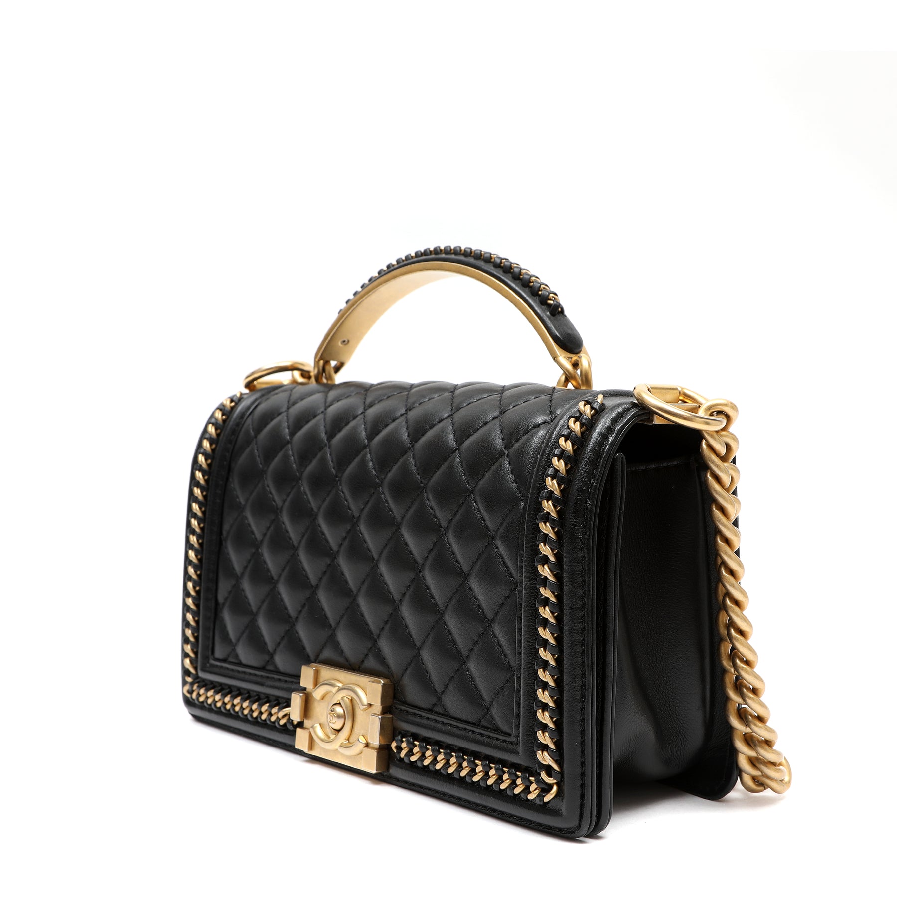 Chanel Black Quilted Calfskin Leather Boy Chanel Flap Bag with Top Handle