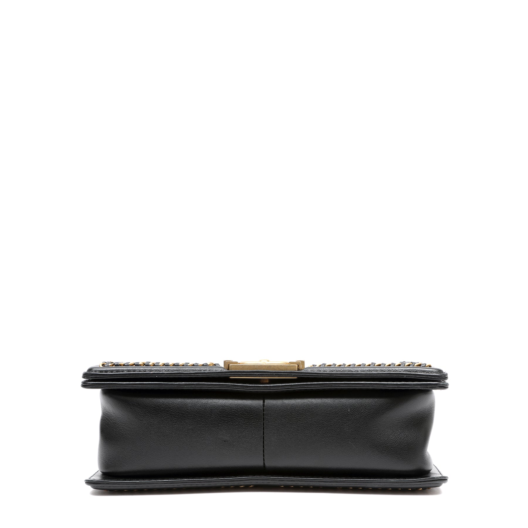 The Chanel Boy Flap Bag with top handle is crafted from black quilted calfskin leather for a sleek, modern look. Its structured silhouette and bold hardware give it a distinctive, edgy appeal. The top handle adds versatility, allowing it to be carried by hand or worn crossbody. A stylish statement piece that blends classic design with contemporary flair.