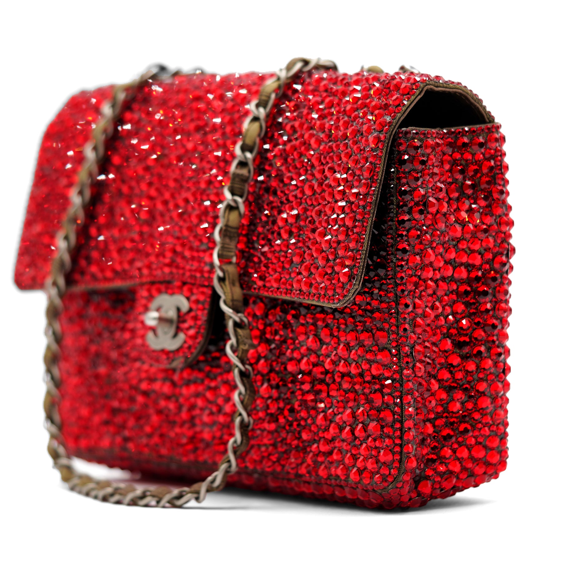 Chanel Med Classic Singla Flap Hemoglobin Swarovski Crystals