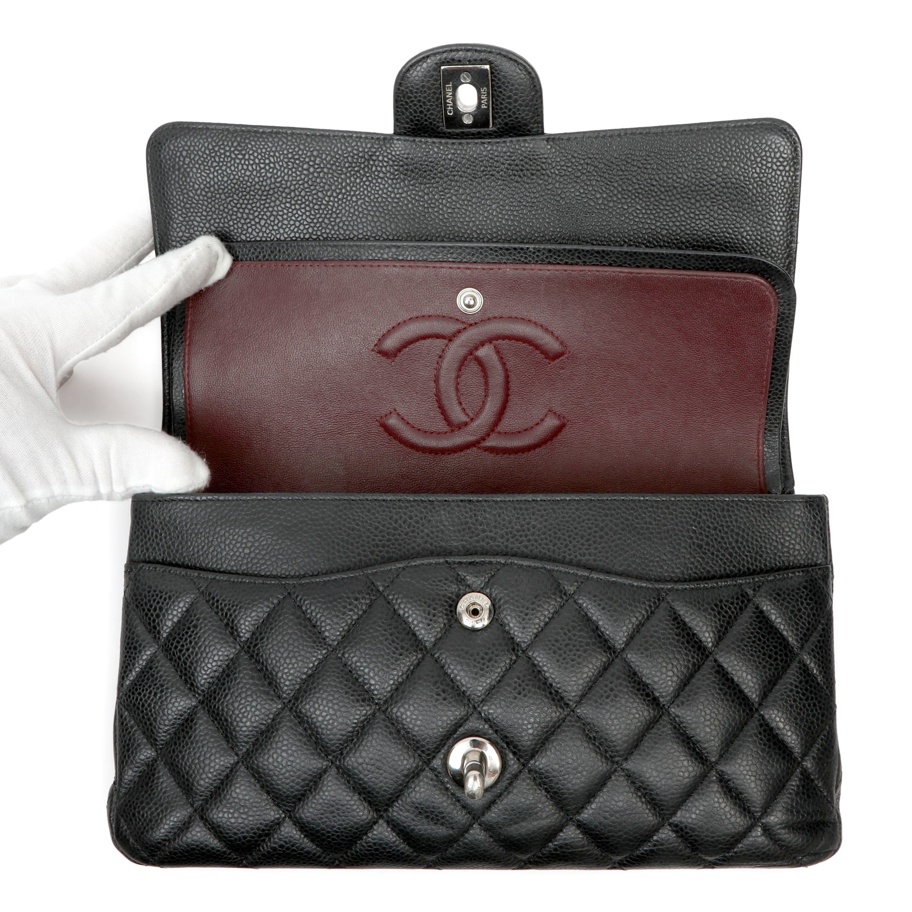 Chanel Classic Double Flap Bag Black Jumbo Quilted Caviar w SH