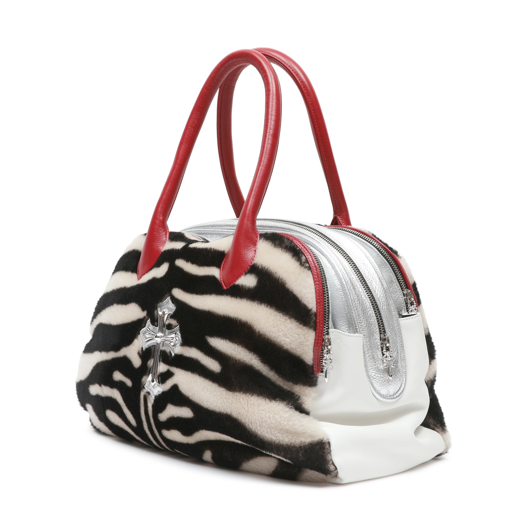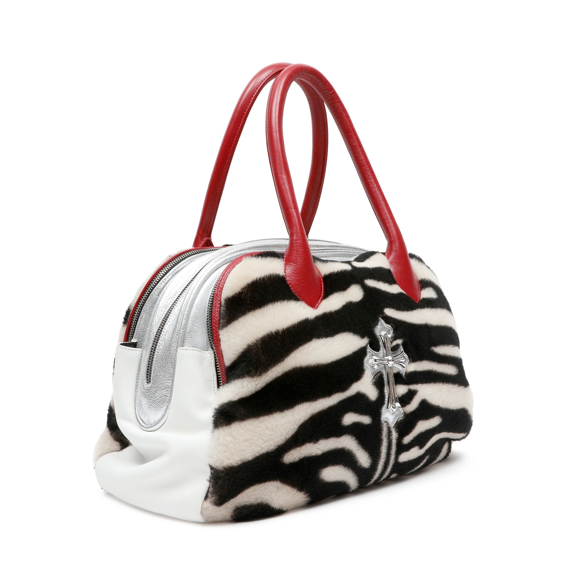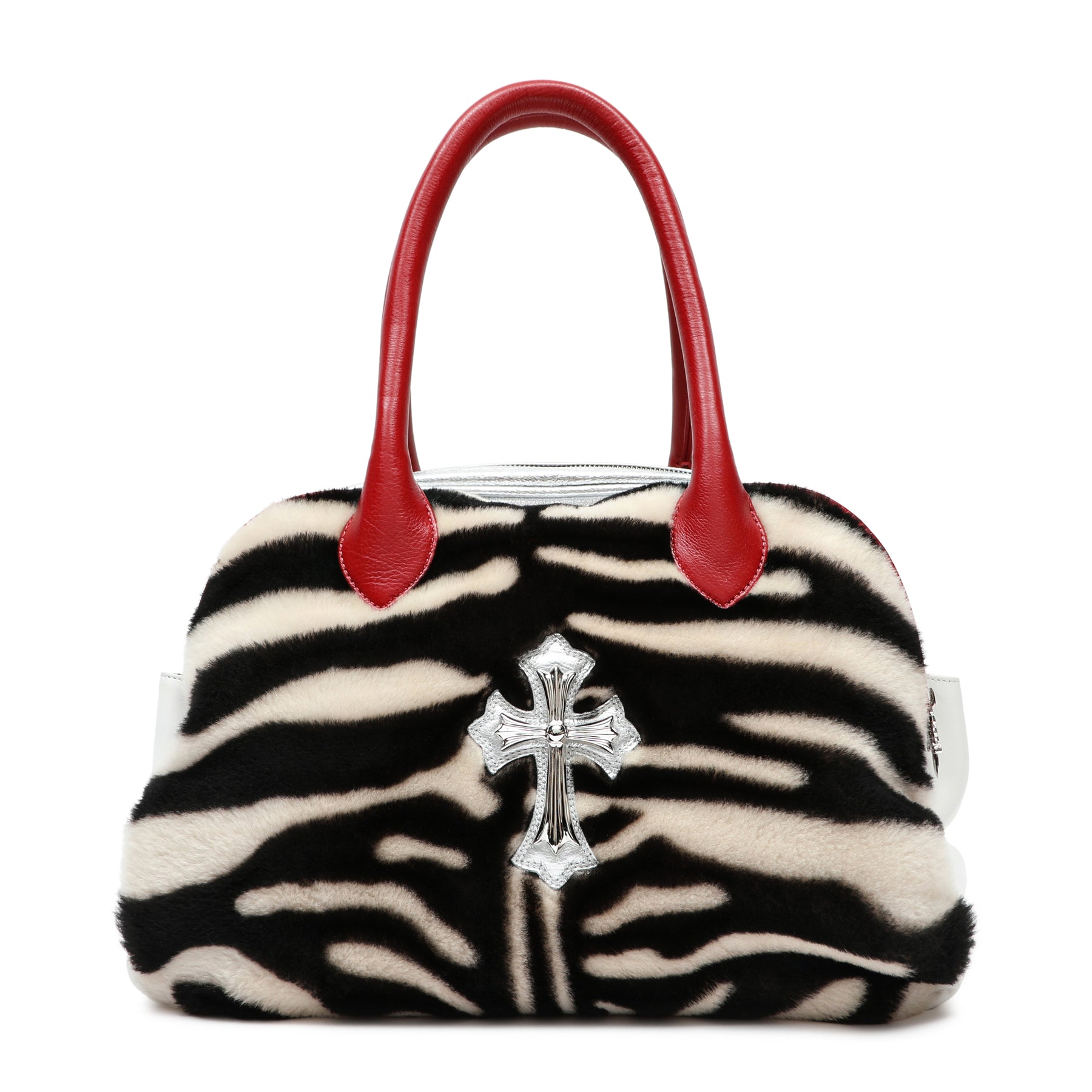 Chrome Hearts Red Leather Cross Patch Pony Hair Cow Stripe Grinds Mini Shoulder Bag